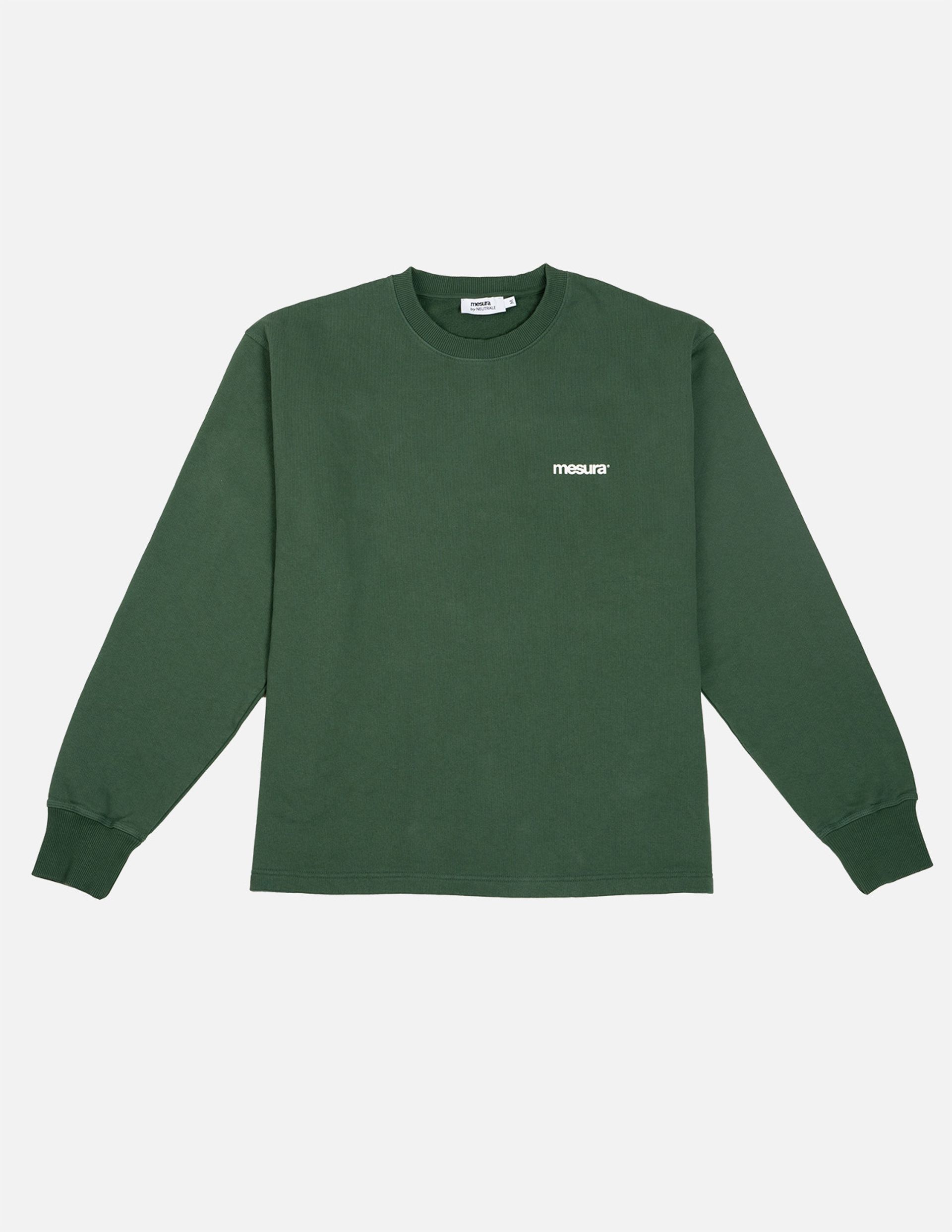 Limited edition Mesura × Neutrale crewneck sweatshirt in forest green and white signature style pattern. Oversized fit, we recommend going a size down.